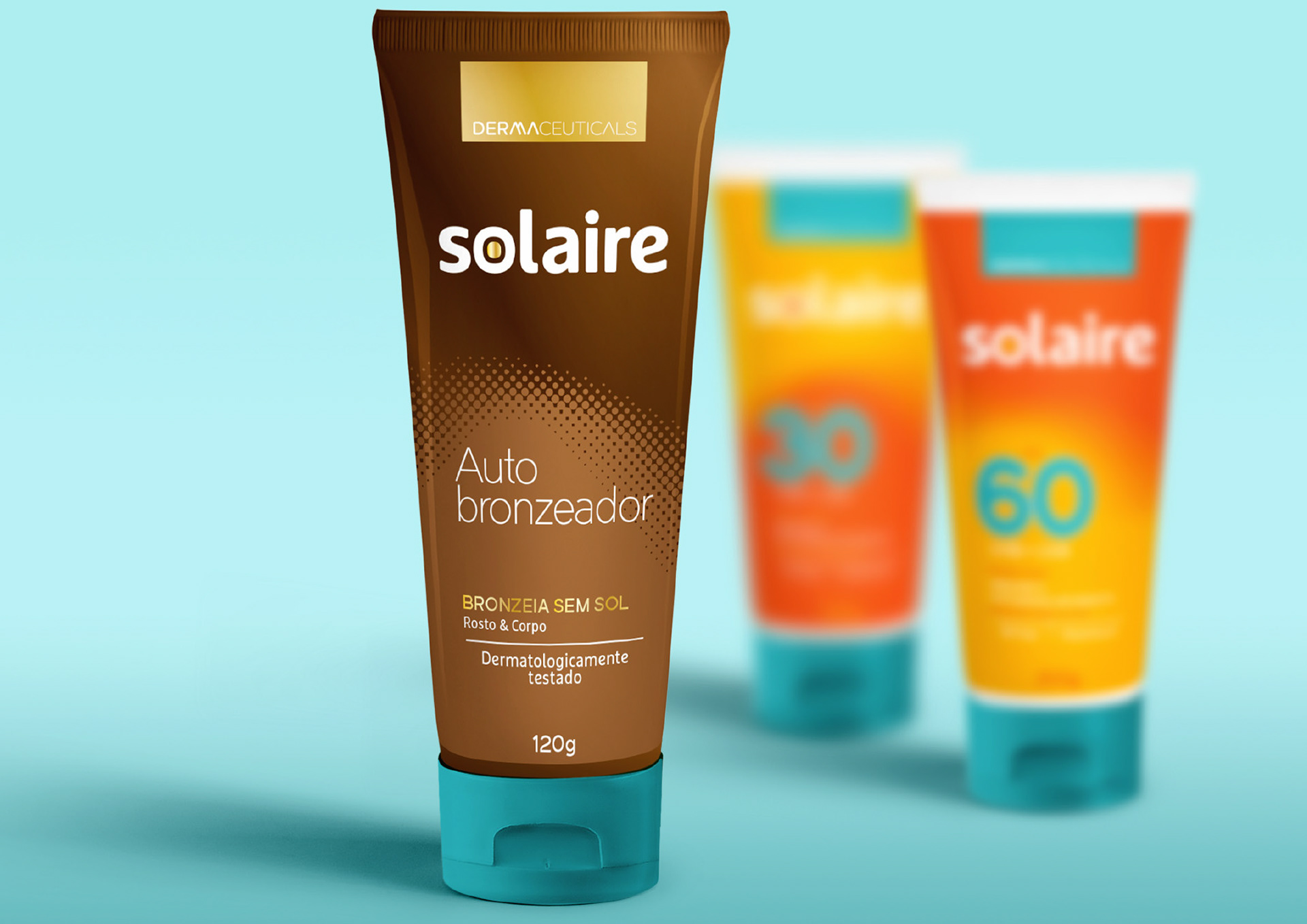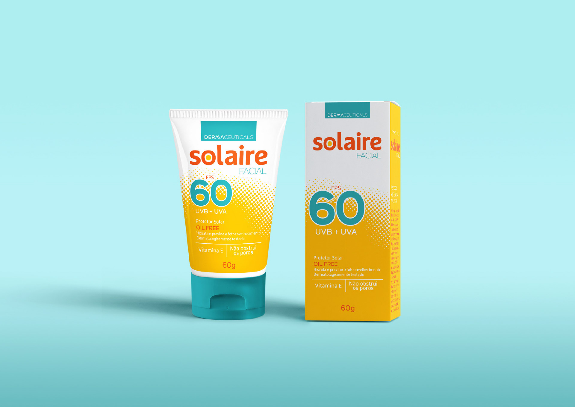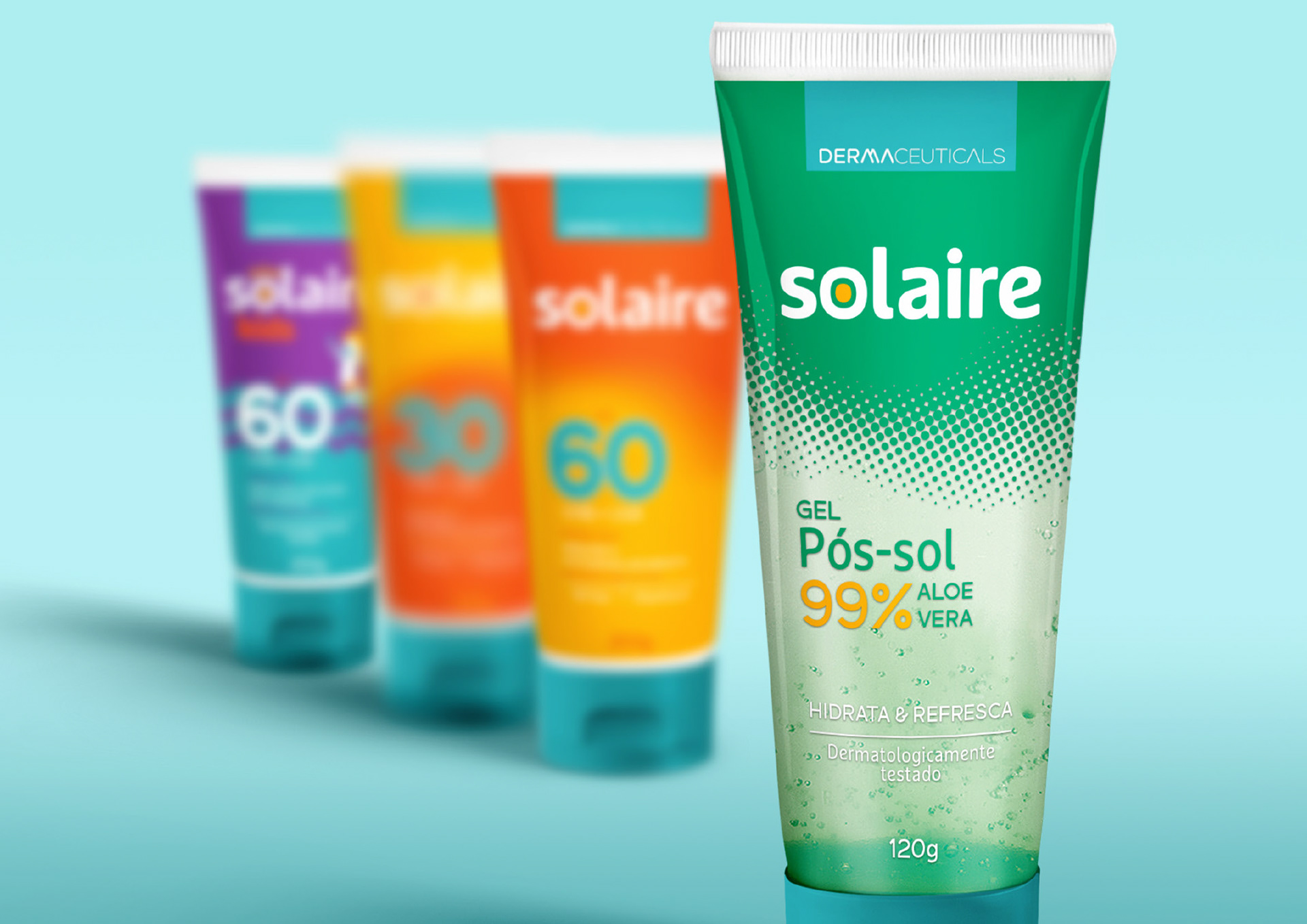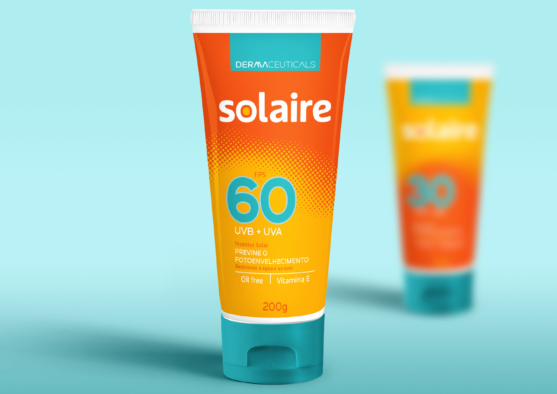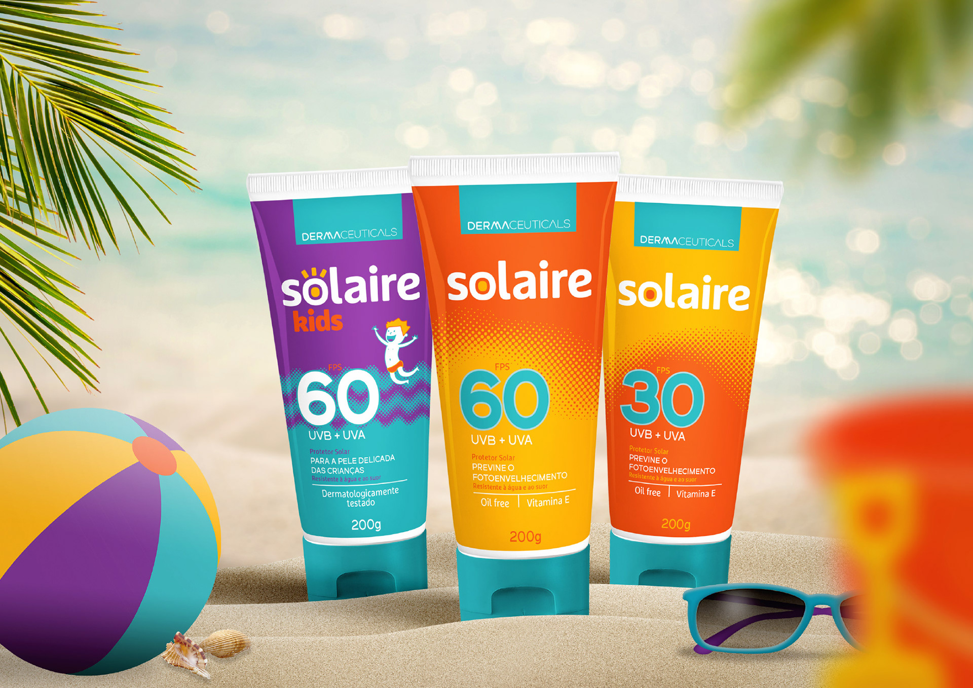 Criação de identidade visual para linha de cosméticos e embalagens para protetores solares das farmácias Maxxi Econômica.
